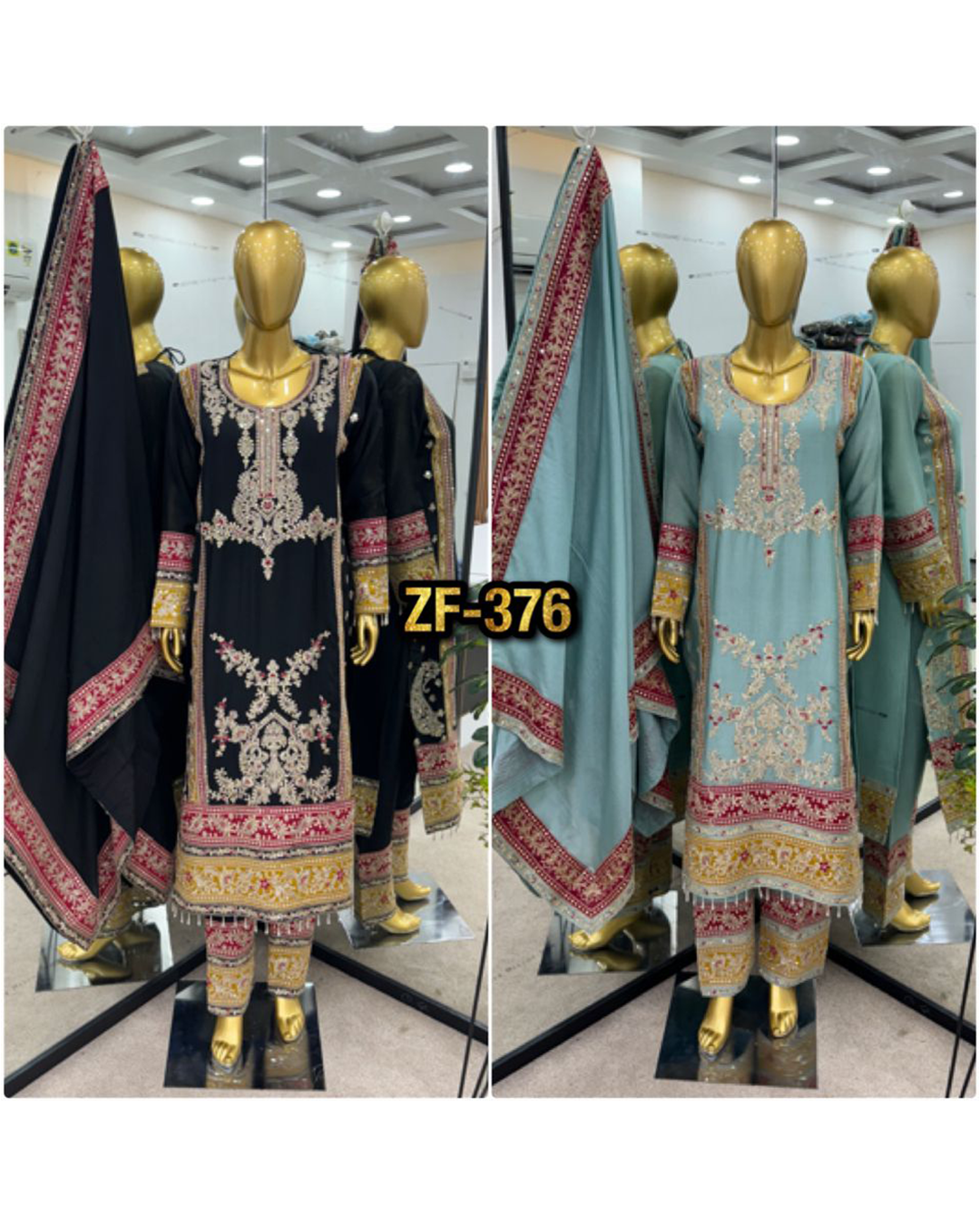Presenting New Ready-made Collection With Pure Chinnon Silk And Heavy Embroidery Cording Sequence Work Top-Bottom And Dupatta Set Fully Stitched Ready To Wear