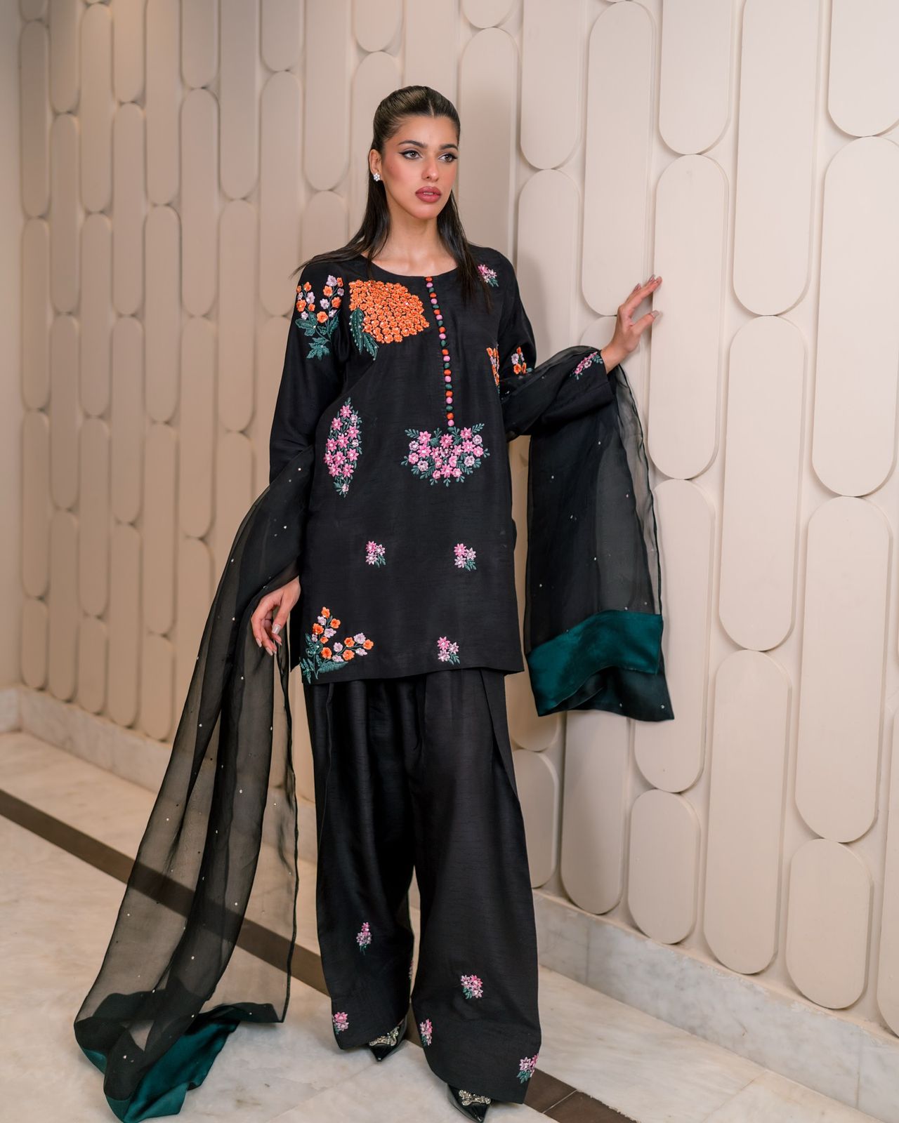 *Top Fabric* :*Pure Natural Crep Silk With Embroidery Sequence Work With Full Sleeve*