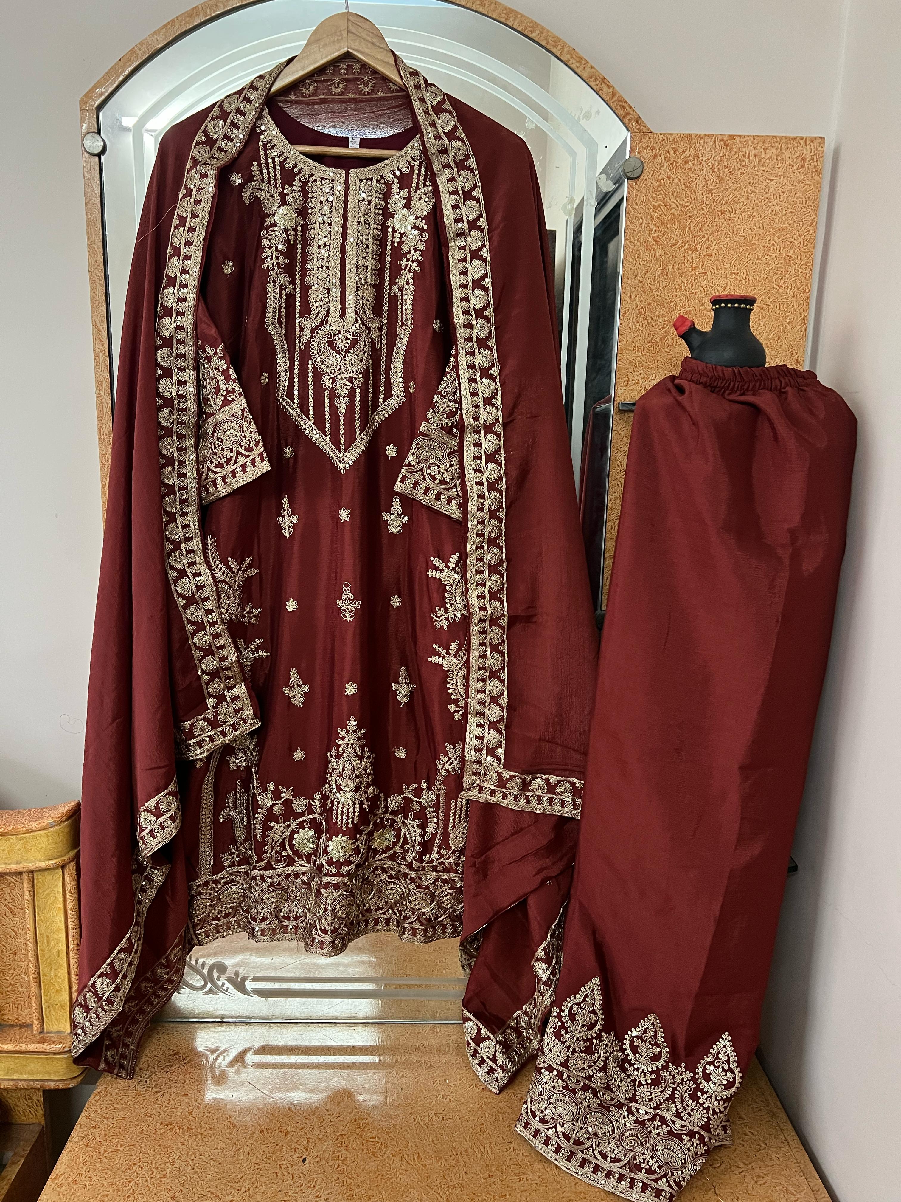 💃 *Work* :- Multi Needle With 3mm Sequins Embroidery Zari work.